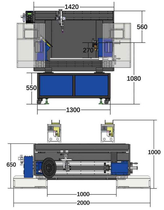 Machine size Length 1500 x Width 650 x Height 1500 (mm)